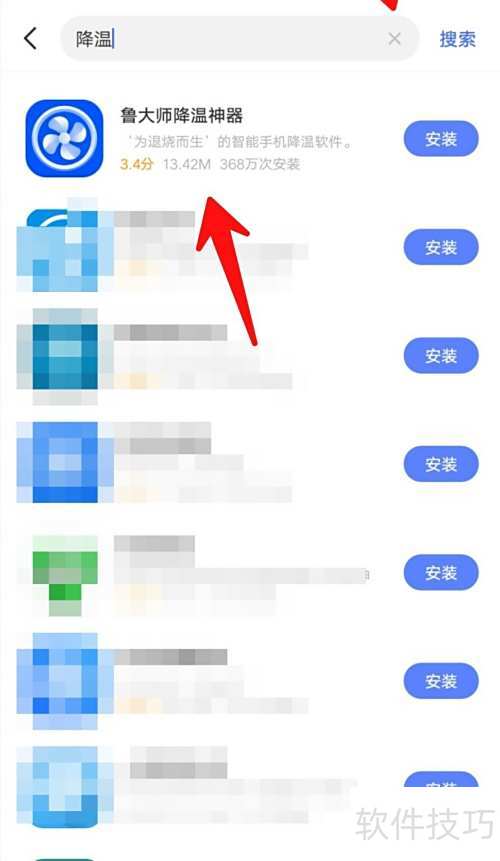 1、 在手机应用商店搜索并下载鲁大师降温工具。