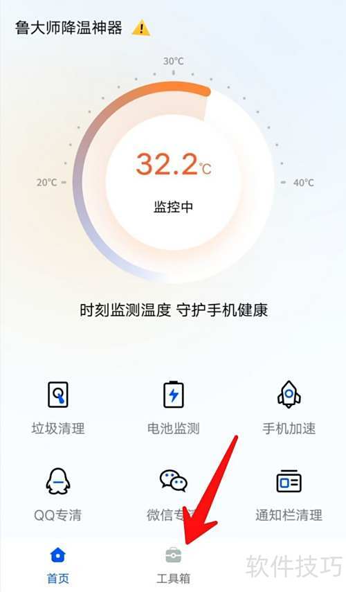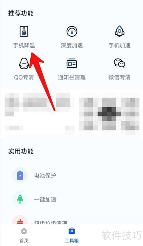 2、 进入页面后选择工具箱,点击手机降温功能。
