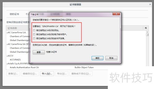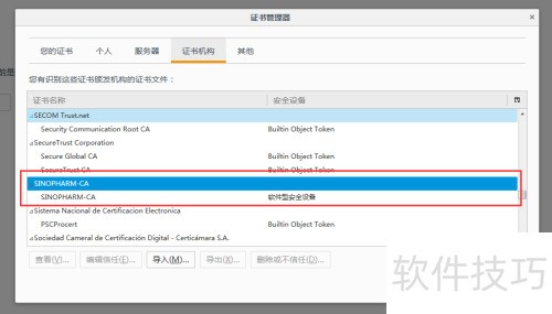 4、 点击导入按钮,选择所需证书文件,通常为.cer或.ecrt格式。