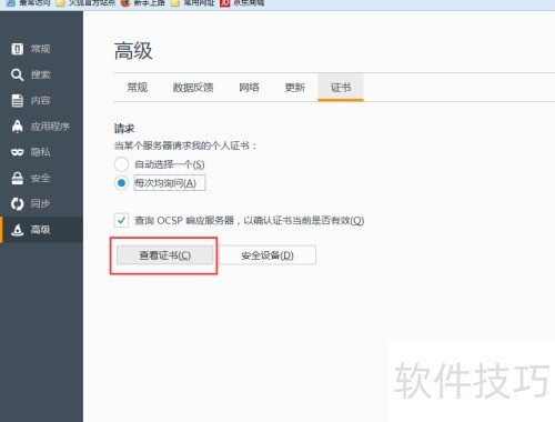 3、 进入高级设置,选择证书标签,点击查看证书即可。