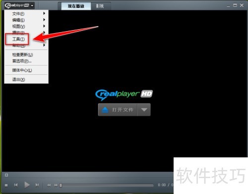 1、 在RealPlayer播放器界面,点击左上角的RealPlayer标志即可。