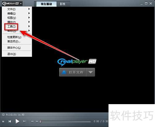 2、 点击RealPlayer窗口左上角的RealPlayer标志即可。