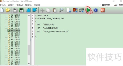 1、 用Resource Hacker打开WinRAR安装目录中的WinRaR.exe文件,进行资源查看或修改操作。