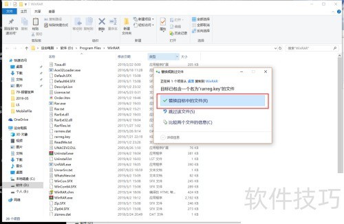 3、 进入WinRAR安装目录,将生成的rarreg.key文件复制进去,覆盖原有文件即可完成替换。