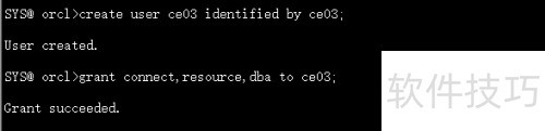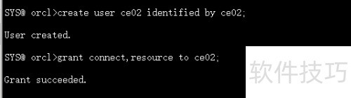 3、 通常情况下,resource角色权限需与connect权限一并使用,是授予普通用户的常见权限组合。例如,为用户ce02同时授予connect和resource权限,所示。