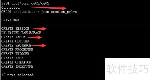 4、 所示,ce02拥有的权限远超仅授予connect权限的用户,能够执行创建表、序列等常用操作,功能更为全面。