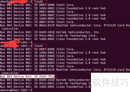 9、 解决方法:lsusb中红框标注部分显示连接设备信息。