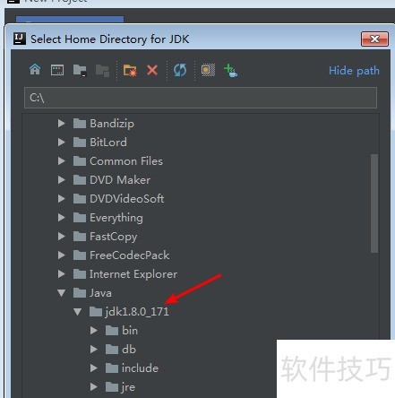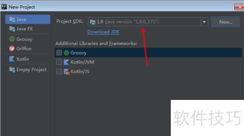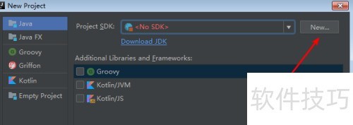 4、 安装完成后,返回IntelliJ操作界面。由于系统无法自动识别,即便已安装仍会提示No SDK。此时需点击图示的New按钮,手动选择JDK的安装目录,确认后即可完成配置。