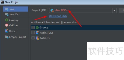 1、 使用IntelliJ IDEA创建Java项目时,初始界面可能出现No SDK的提示,表明软件未内置开发工具包,需用户自行配置。此时无需担心,系统已贴心地提供JDK下载链接,直接点击Download JDK即可获取所需版本,完成环境搭建后便可顺利开展项目开发,操作简便且流程清晰。