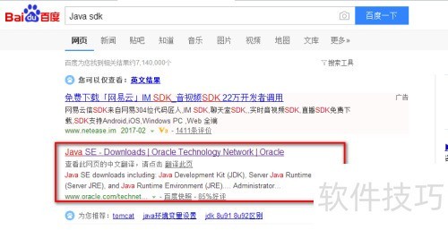 1、 首先需安装Java SDK,可前往官网下载,通过百度搜索Java SDK即可找到官方下载链接,所示即为正确网址。