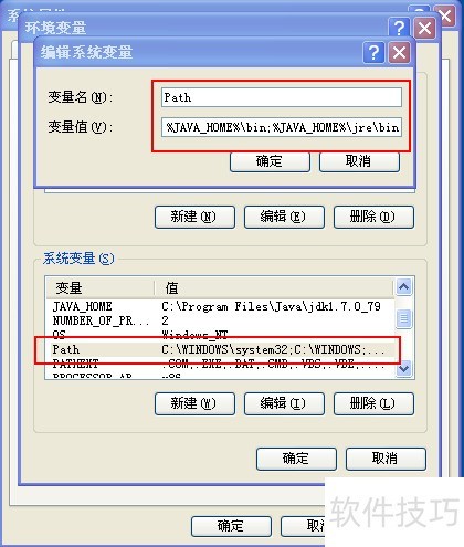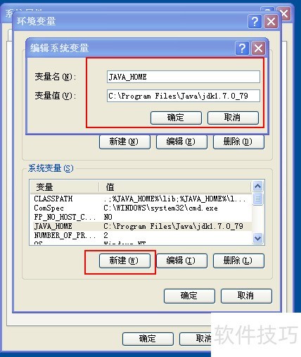 4、 将JAVA_HOME环境变量设置为C:Program FilesJavajdk1.7.0_79,确保路径正确并添加到系统变量中。