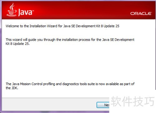 11、 双击运行jdk-8u25-windows-x64安装文件,启动Java JDK安装程序。