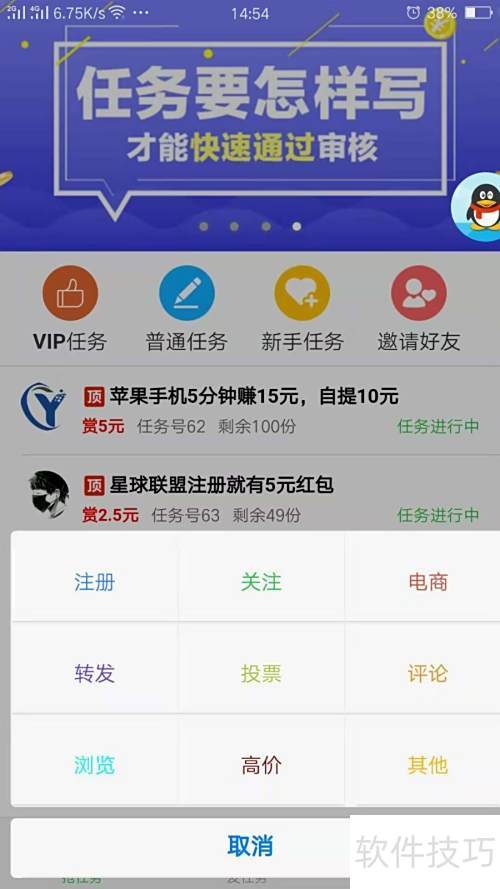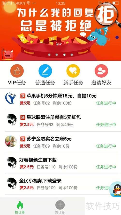 3、 返回首页,挑选适合的任务,迅速抢领并按要求执行,顺利完成即可。