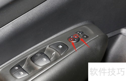 4、 将选择按钮向右拨动,即可调节右侧后视镜。