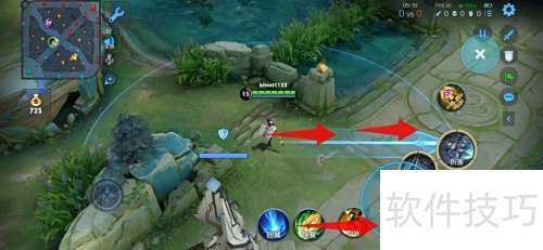 2、 释放二技能后稍等0.3秒,待技能命中即刻接三技能,先后向前滑行两次,再向后滑行两次,最后一次滑行可根据敌人位置灵活调整方向,实现飞天。团战时可先用一二技能消耗,诱使敌人误判技能空档,再以二技能衔接大招迅速升空,打对手措手不及。