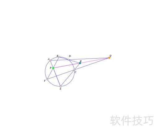 2、 圆上六点A、B、C、D、E、F,分别连接AE与BF交于P,BD与CE交于R,AD与CF交于Q,则P、Q、R三点共线。