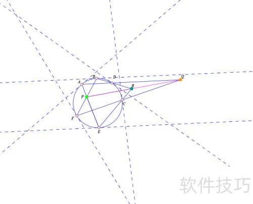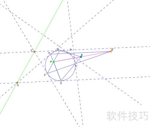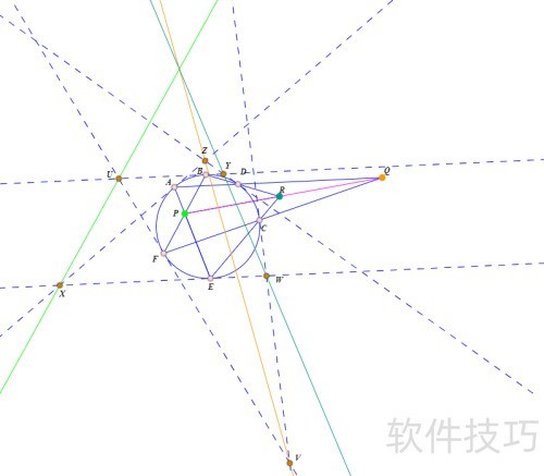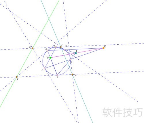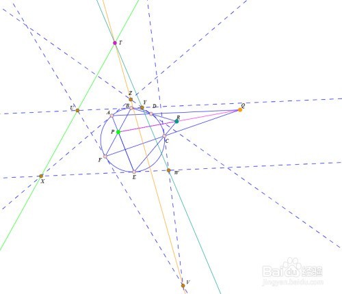 5、 设AE的极点为X,BF的极点为U,则点P的极线即为直线XU。