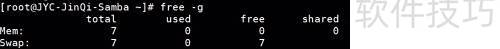 2、 使用free -h命令,以GB为单位查看内存使用状态。