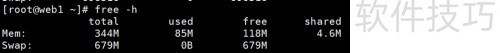 1、 使用free -h命令,以更直观的方式显示内存使用状态。