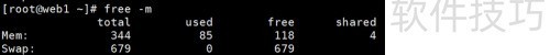 3、 使用free -h命令,以MB为单位查看内存使用情况。
