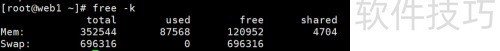 5、 使用 free -k 命令以千字节为单位查看内存使用状态。