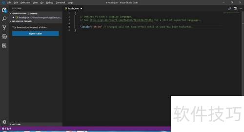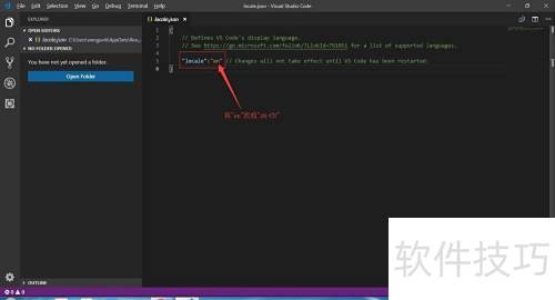 5、 打开locale.json文件,填入所需默认语言,保存更改后重新启动Visual Studio Code即可生效。