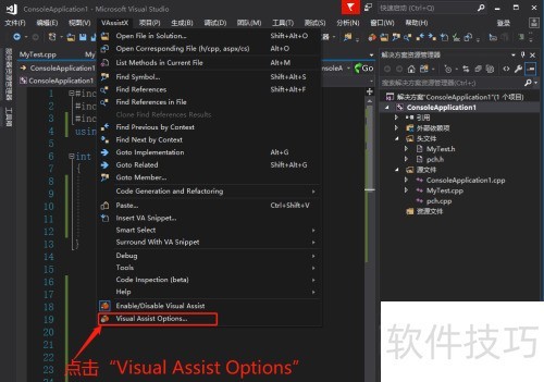 2、 点击VAssistX菜单选项