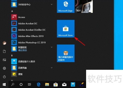 7、 点击开始菜单,找到并打开其中的Microsoft Store应用。