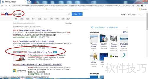 1、 在百度搜索微软官网,找到结果中的微软中国官方网站-Microsoft -Official Home Page并点击进入。