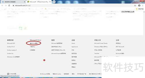 2、 访问微软官网,滚动至页面底部,点击账户个人资料即可进入相关页面。