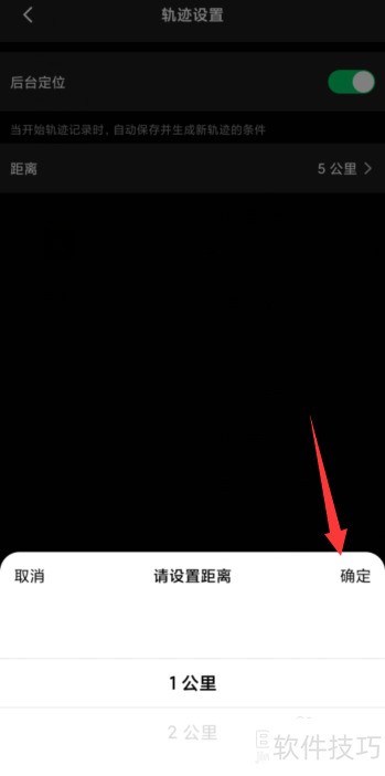 3、 点击后,显示当前5公里,下方弹出窗口选择所需公里数,最后点击完成设置。