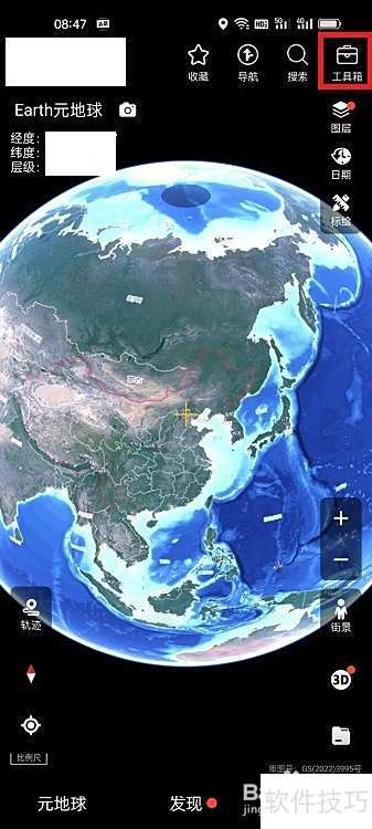 1、 进入Earth元地球,点击右上角工具箱即可使用功能。