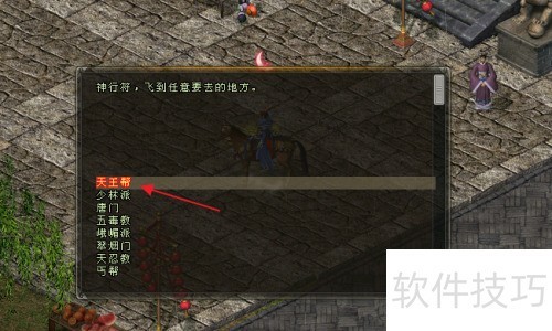 1、 进入剑侠情缘网游,用神行符传送至天王帮。