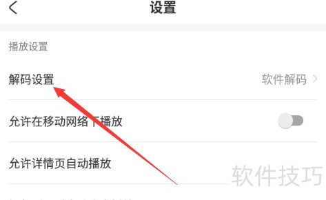 4、 在弹出的选项中选择软件解码,若原先已选则改为系统硬解。