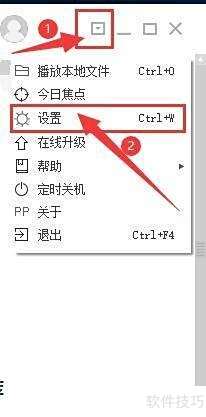 2、 进入主界面,点击右上角菜单,从下拉选项中选择设置,位置中箭头所示。