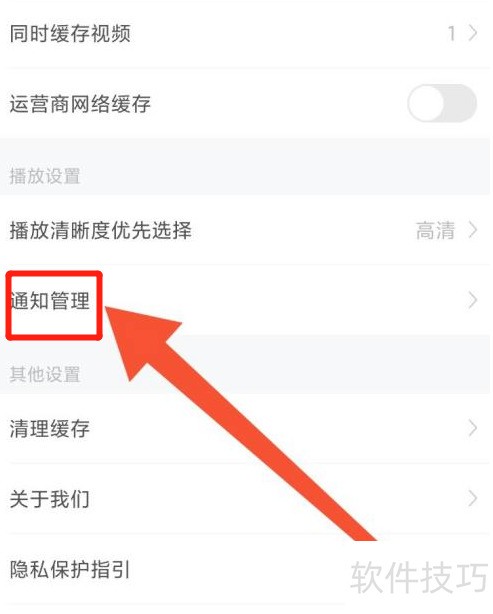 2、 进入设置页面,选择通知管理功能。