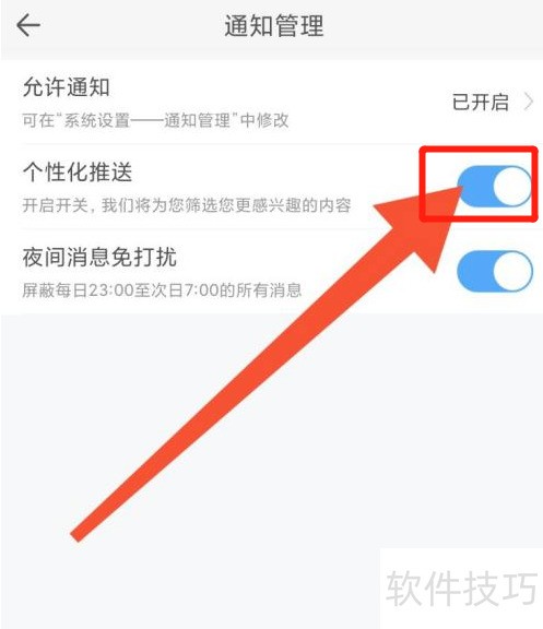 3、 进入通知管理页面,选择并开启功能,操作所示。