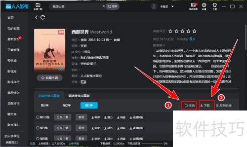 4、 勾选全选后点击下载,即可批量添加所有剧集进行下载。