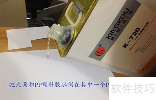 4、 在PP塑料表面均匀涂抹双面胶,静置3至5分钟(以手触不拉丝为准),再将两面用力压合。双面涂胶可加快固化速度,提升粘接强度,相比单面涂胶具有更高的牢固性和可靠性。