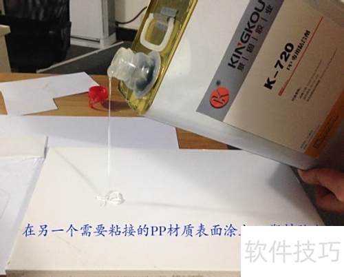 3、 将胶水均匀涂于PP塑料表面,用锯齿刮板单向刮平,随后将两面贴合,若能加压加热,可有效提升固化效率,使粘接更牢固。