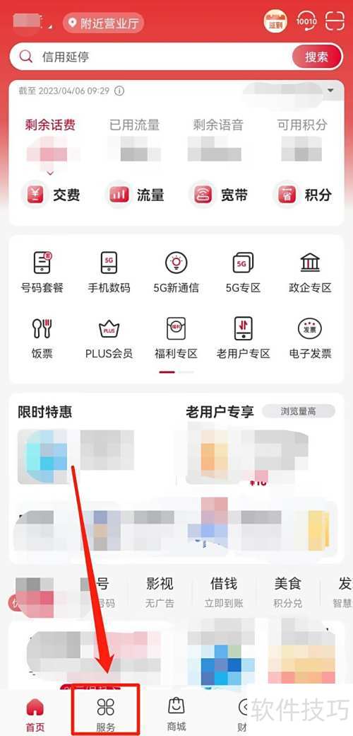 1、 登录中国联通APP,使用河南联通号码进入后,点击底部服务选项即可。