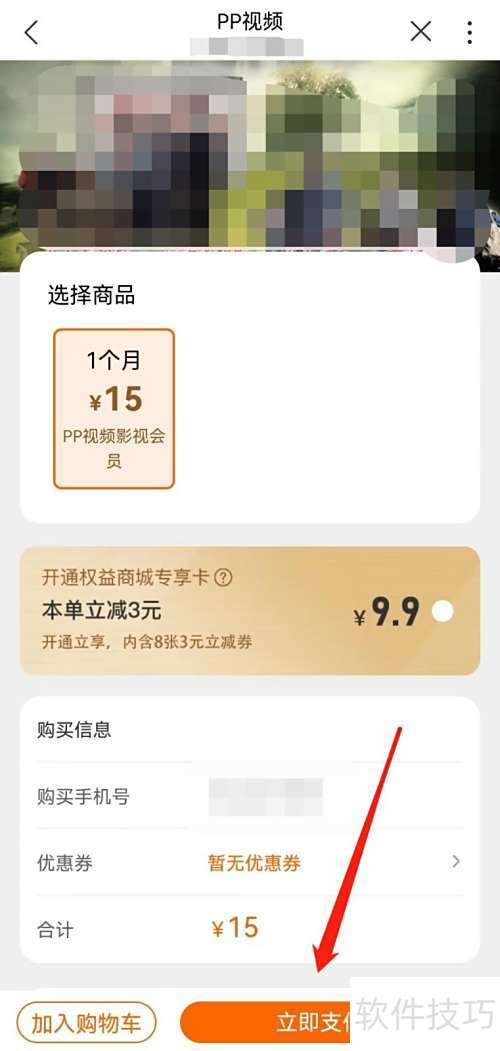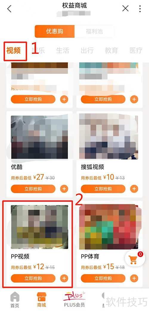 3、 进入权益商城,点击视频后选择PP视频。