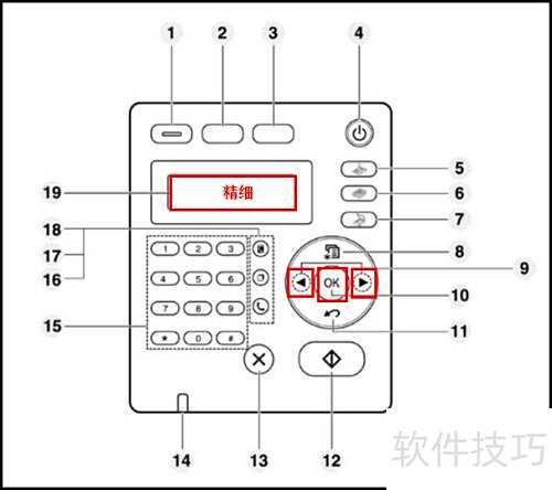 4、 通过控制面板上的左右箭头键,选择所需模式,如标准、精细、超精细、照片传真或彩色传真,此处以精细为例,选定后按下OK键确认。