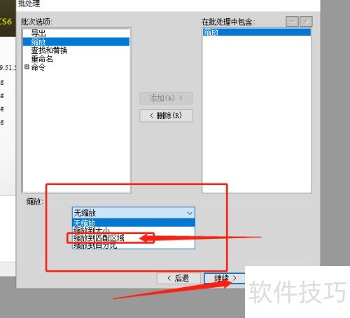 4、 选择无缩放后,根据需求选取压缩方式,如匹配区域压缩,具体方法因人而异,视实际情况决定。