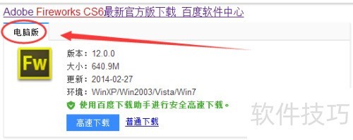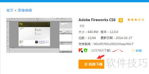 4、 百度软件中心提供Adobe Fireworks CS6最新版下载,适用于电脑用户。下载前请确认电脑型号及配置是否符合软件运行要求。