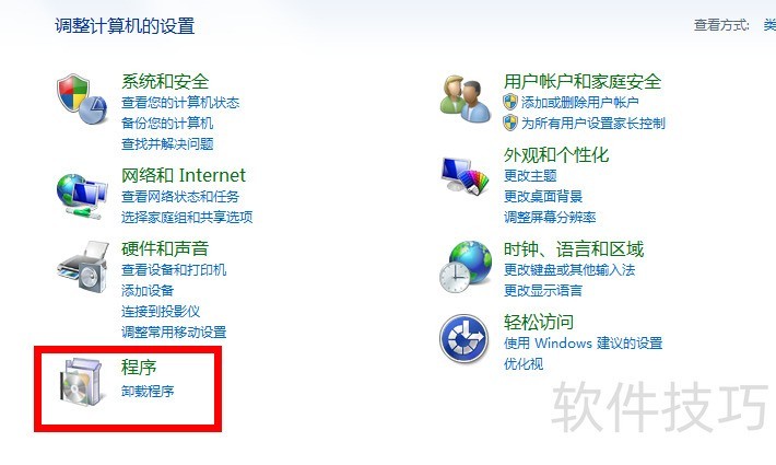 6、 进入控制面板,点击程序下的卸载程序,系统将显示已安装软件列表,双击需要移除的程序,按照提示完成卸载操作即可。
