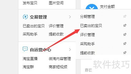 2、 在卖家中心左侧菜单中找到交易管理选项。