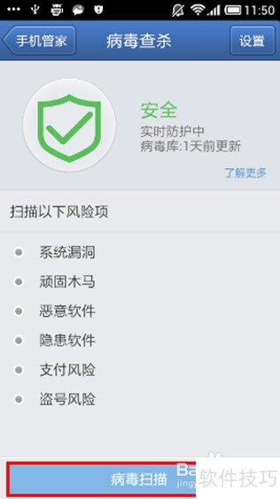 4、 安装腾讯手机管家可有效防范和清除手机病毒,保障设备安全。
