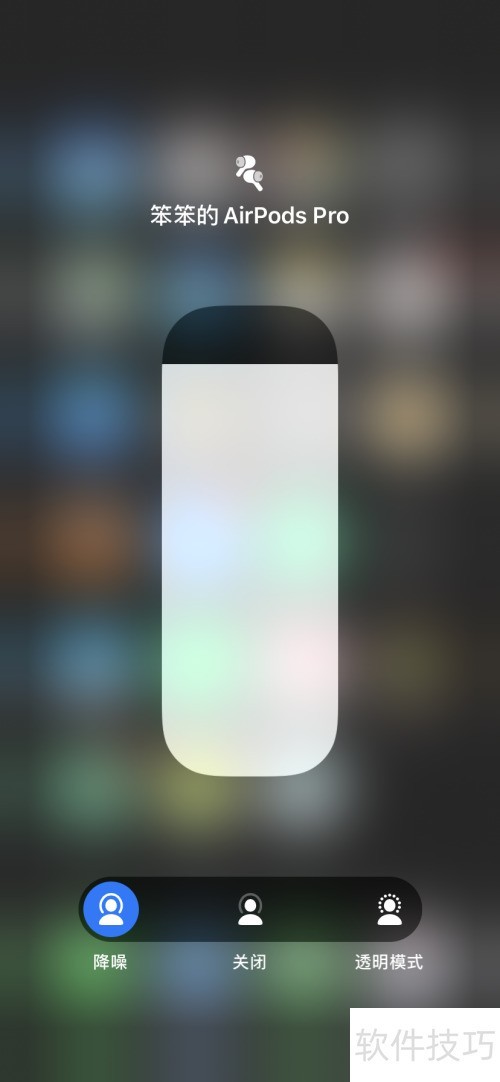 7、 打开手机控制中心,点击音量图标,即可在「主动降噪」与「通透模式」间切换 AirPods Pro。