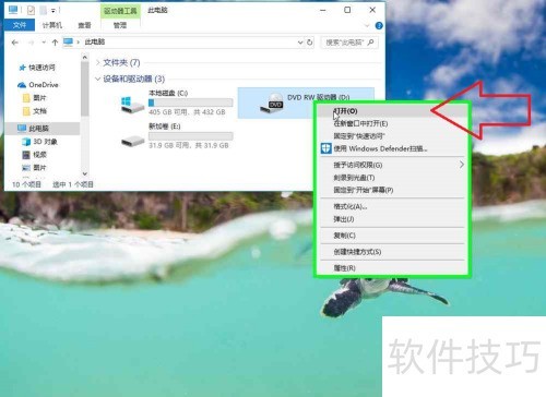 4、 在此电脑中右键点击DVD RW 驱动器即可。